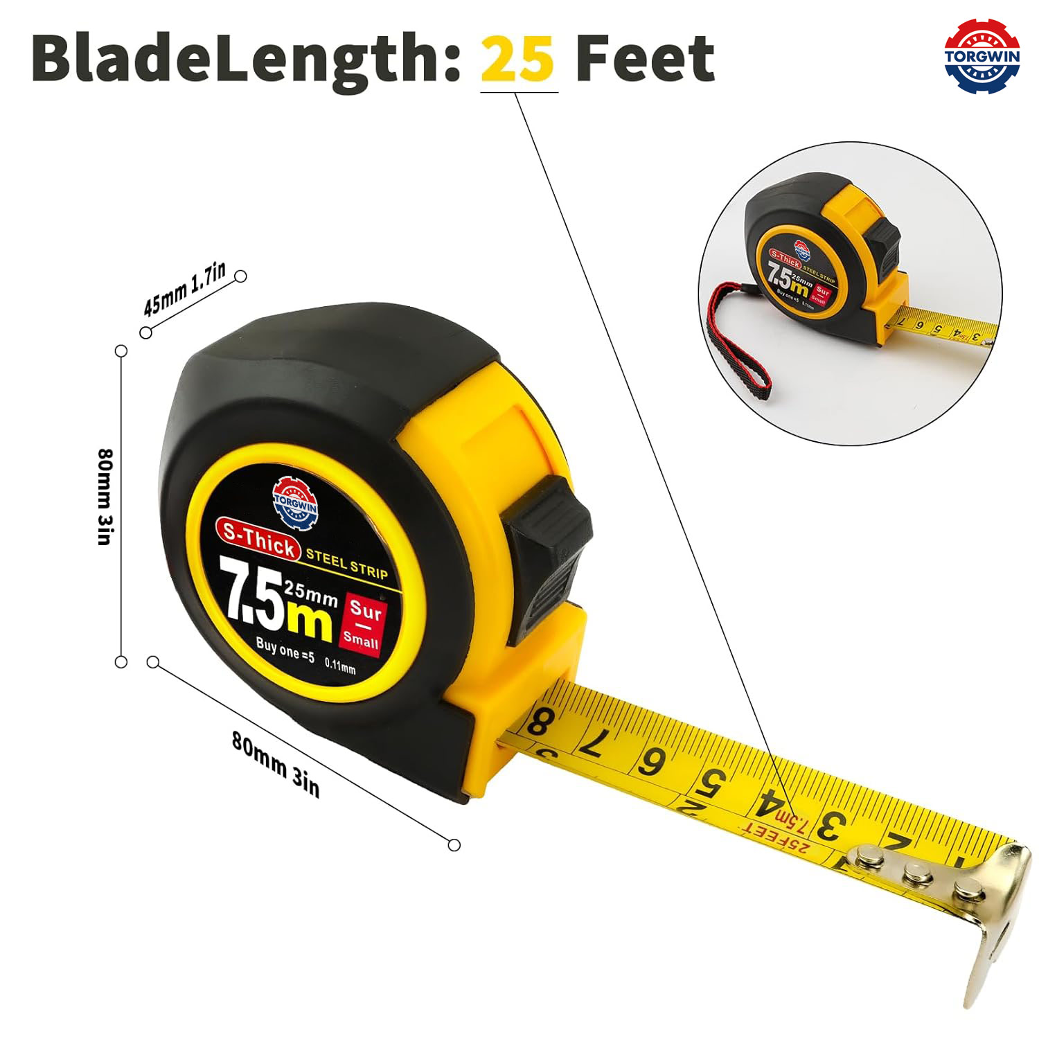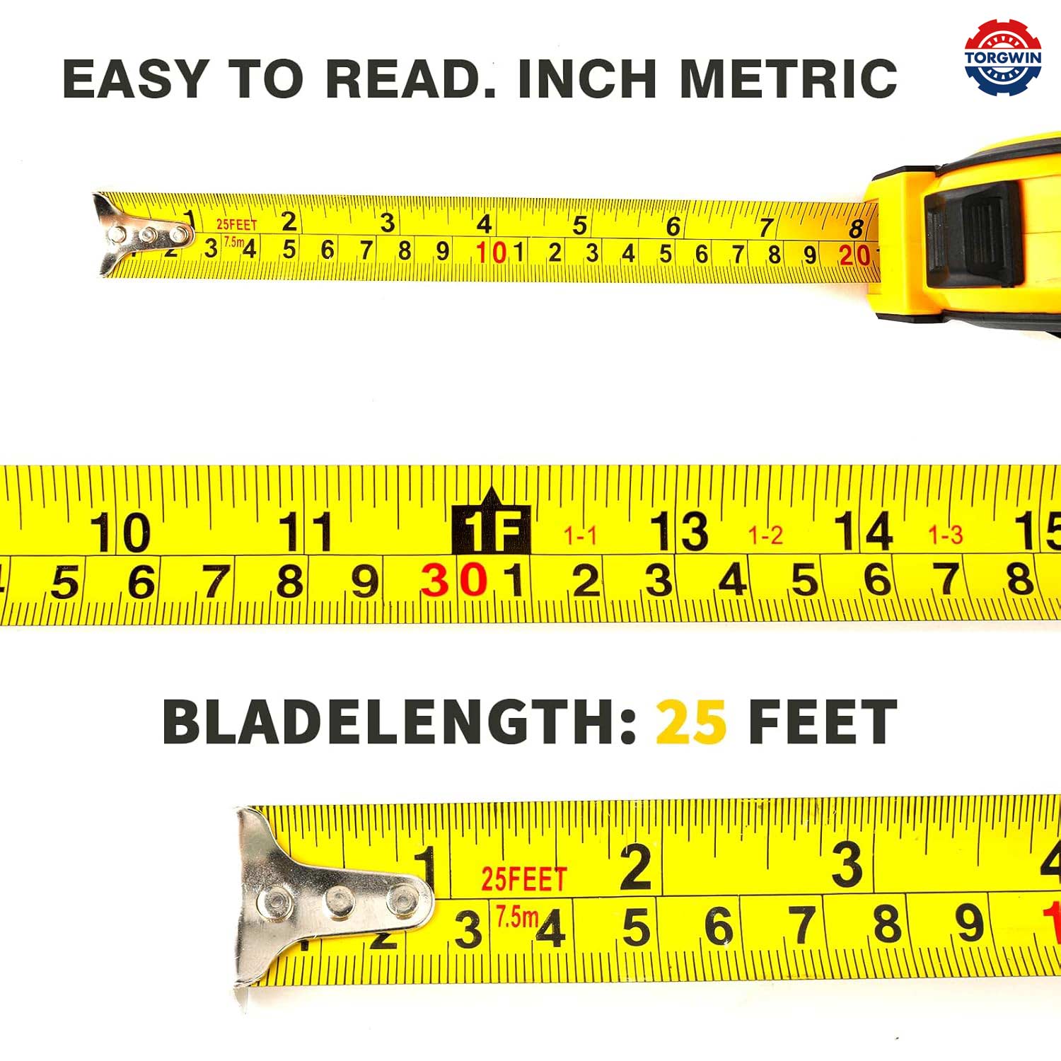 شريط قياس الصلب Torgwin ، شريط قياس 25 قدم ، قياس شريط قابل للسحب